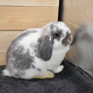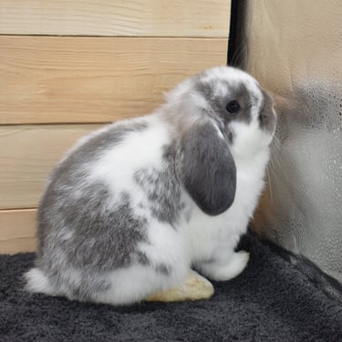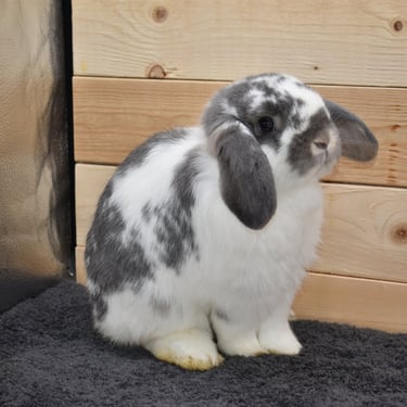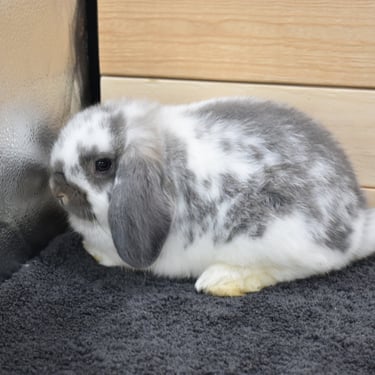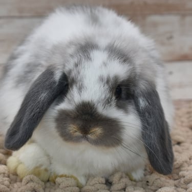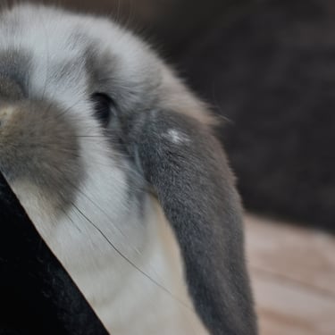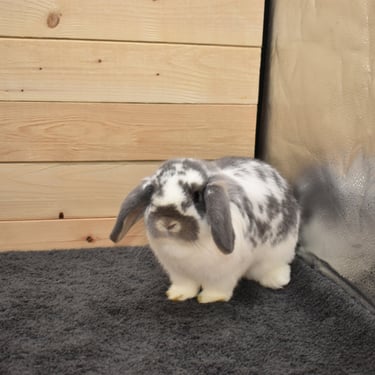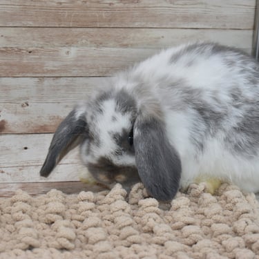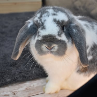 Kayak is an absolute smoosh of a Bun. She is comfortably sociable, but likes to observe when people aren't directly interacting with her. When she's feeling content and relaxed, she will express her happiness with a mighty flop onto her side. She is a gentle little doe with a loving temperament. She's almost always up for a good cuddle. Kayak will do some exploring, but never seems to wander very far before checking back in with her person or littermates.