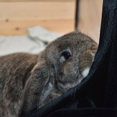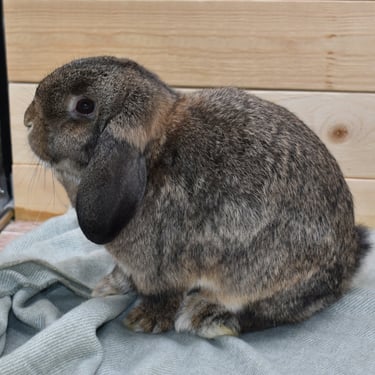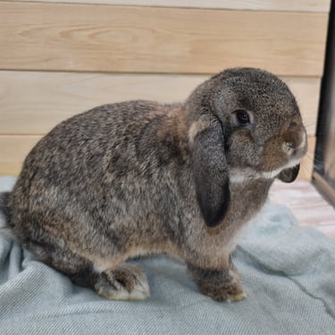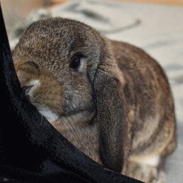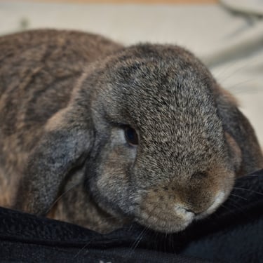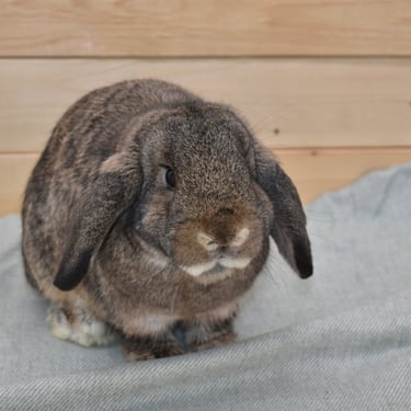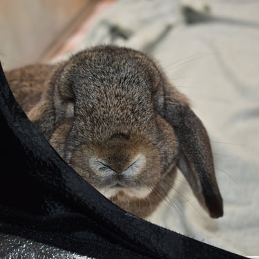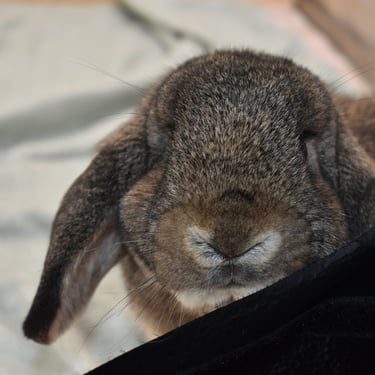 Cabana is a mellow, cuddly potato Bun. Her temperament is very similar to that of Sand Dollar, the frosty fuzzy doe who is also available. They have the same demeanor and lower energy level.